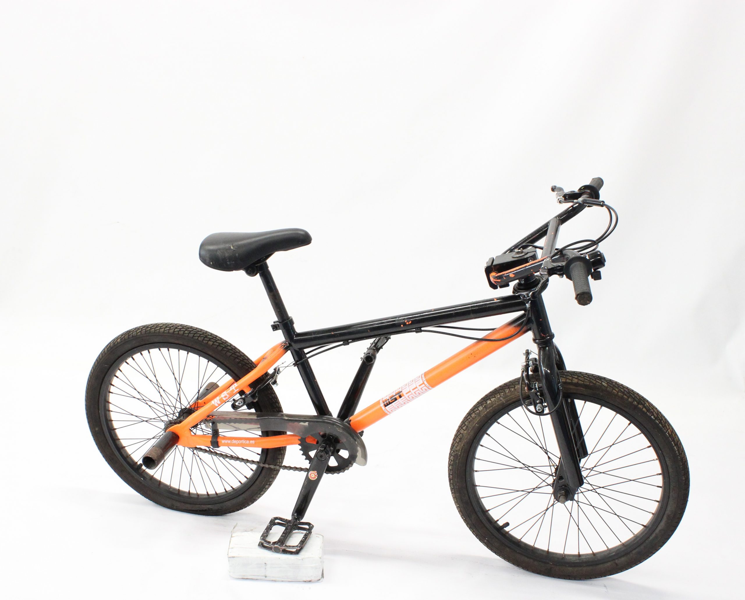 Bicicleta es una KTM BMX diseñada para el estilo libre y acrobacias. Presenta un manillar alto para mayor control y neumáticos gruesos típicos de esta disciplina. El cuadro es resistente, adecuado para realizar saltos y trucos tanto en la calle como en skateparks.