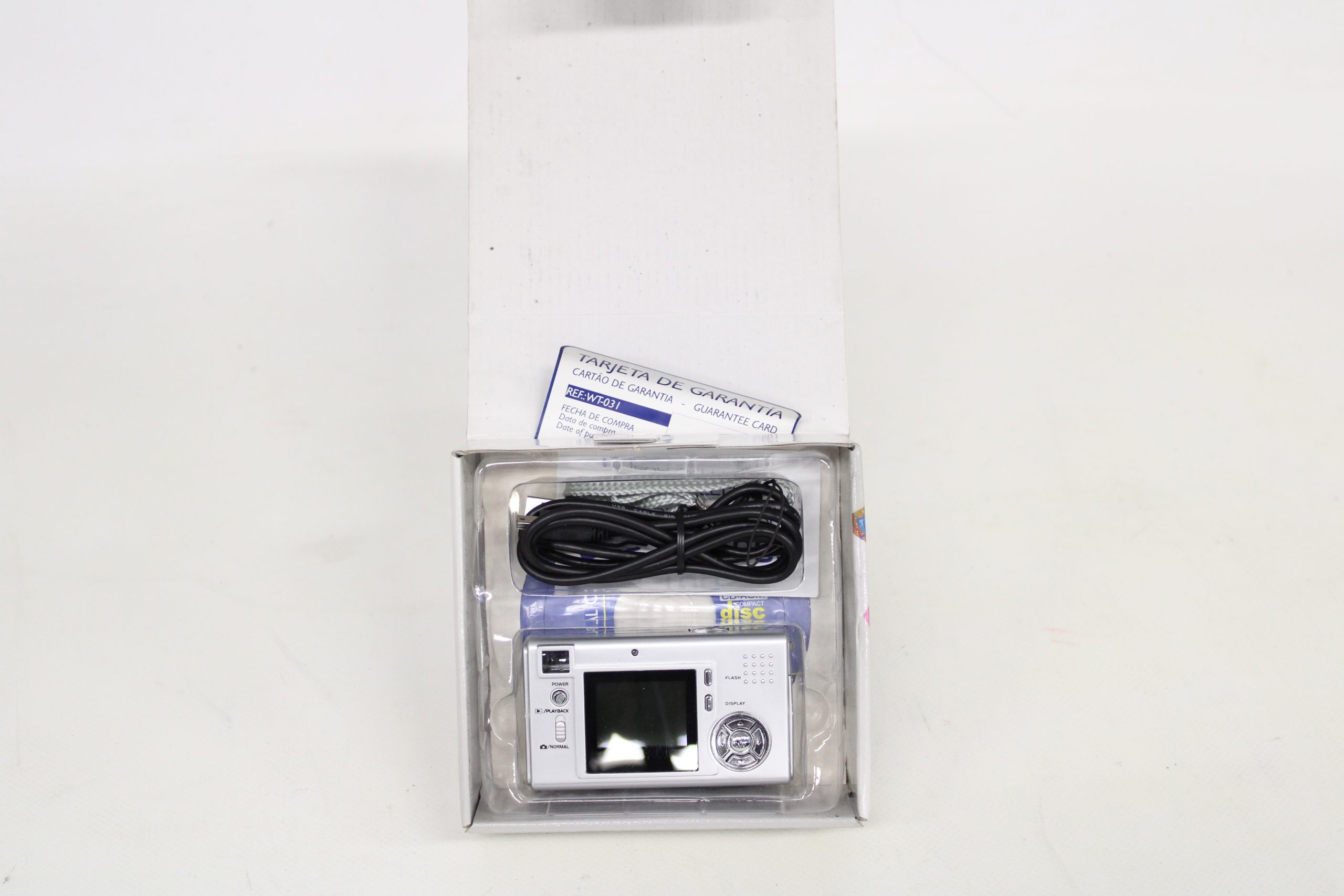 Cámara digital EP3 en color plata. Esta digicam funciona con pilas , sin problema de baterías ni cargadores. Camara vintage pequeña de viaje.