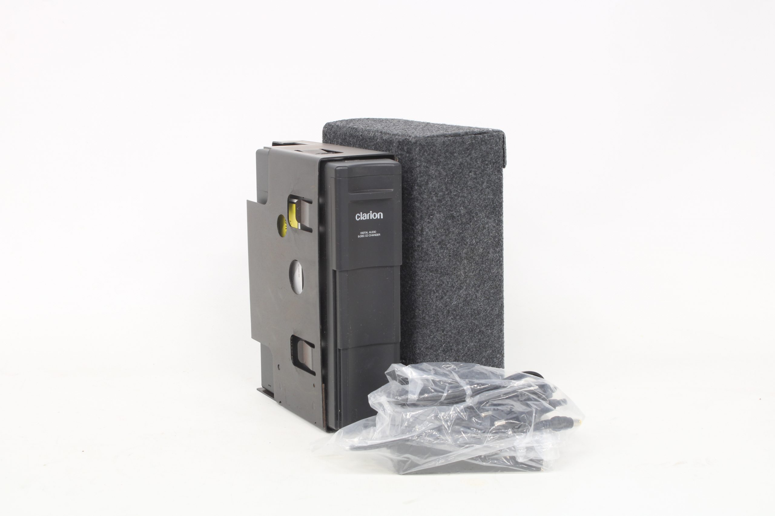 Cargador de CD para coche, marca Clarion con funda original. Para Peugeot 407.