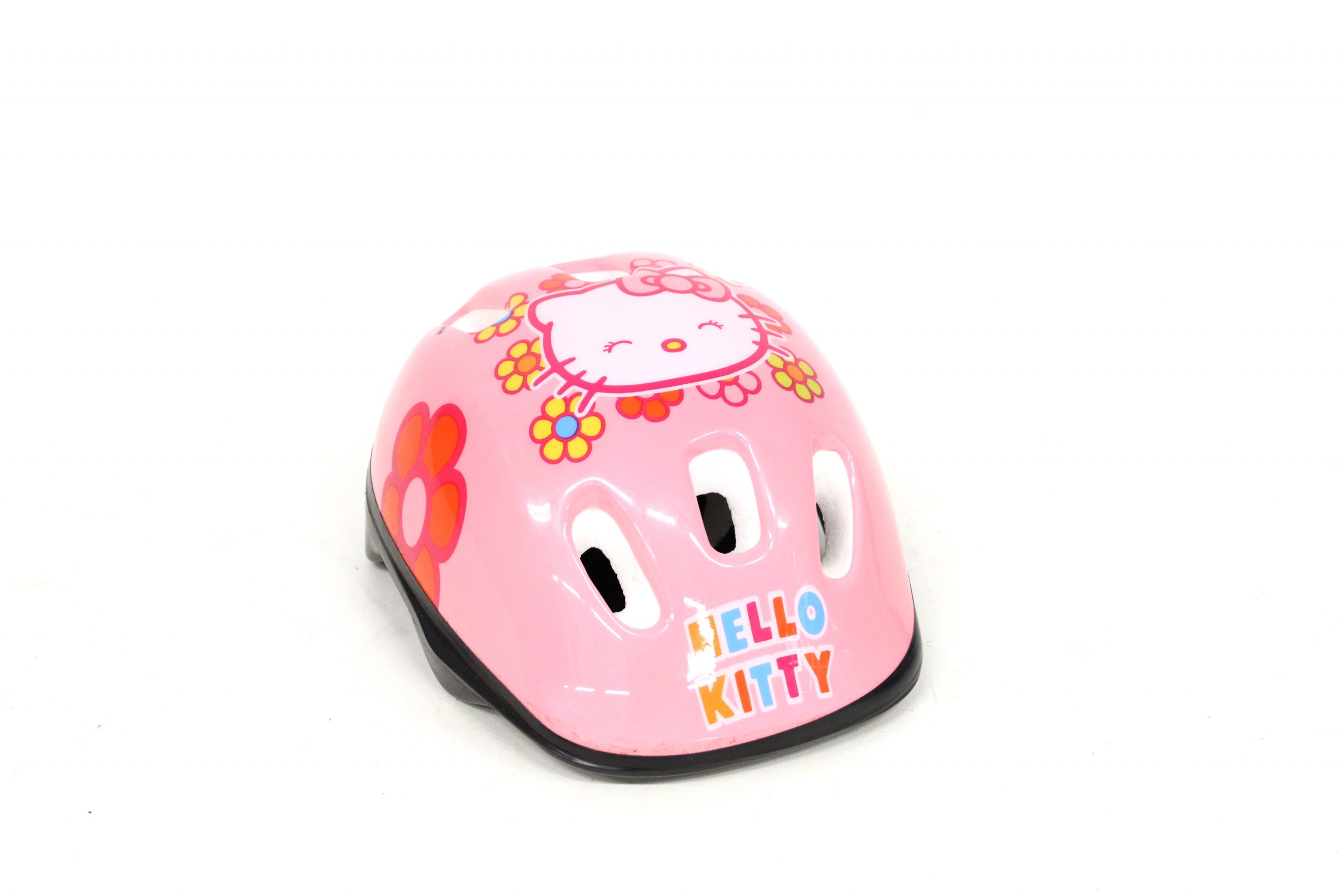 Casco infantil de Hello Kitty. Está diseñado para proteger la cabeza de los niños mientras andan en bicicleta, patines o patinetes.