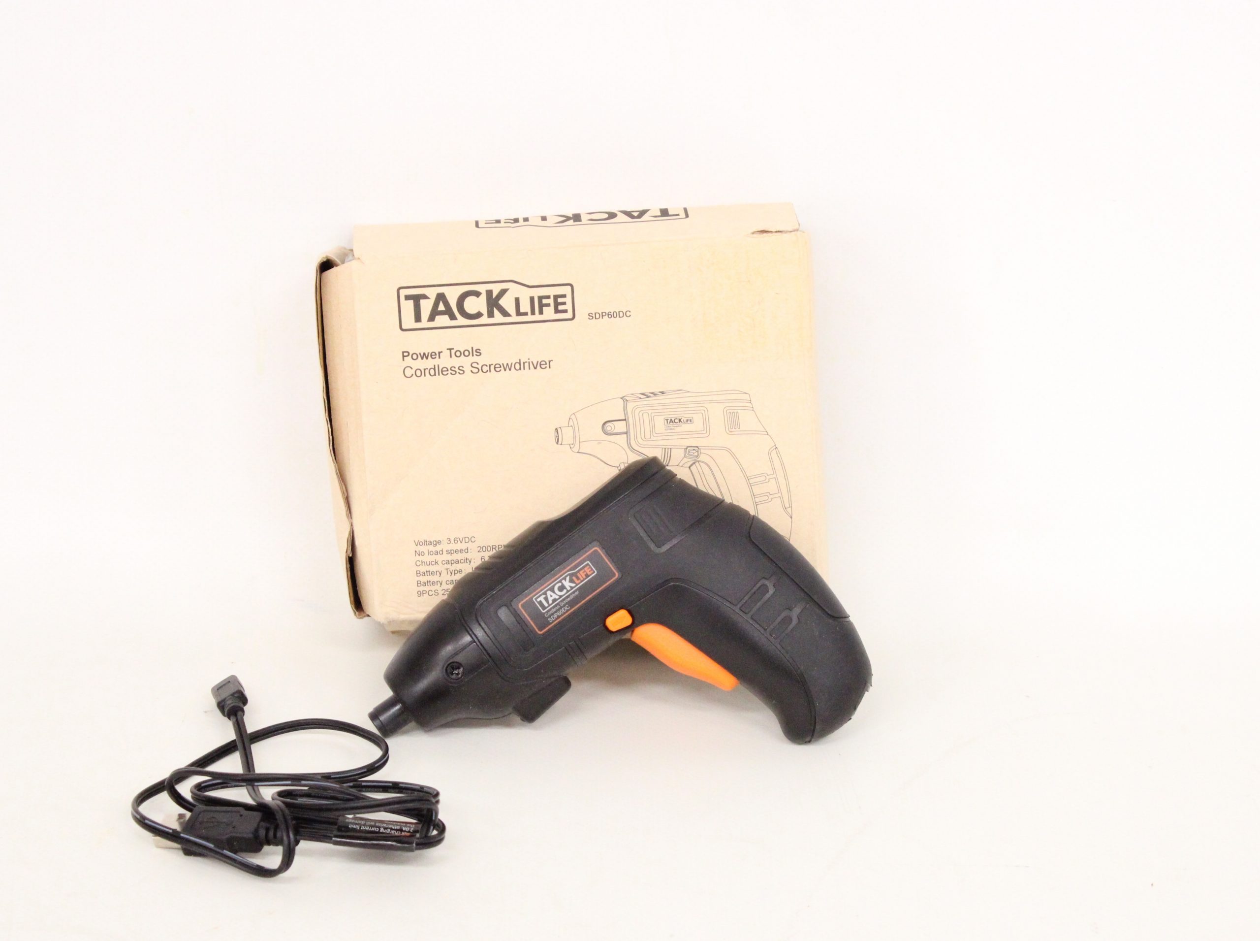 Destornillador eléctrico inalámbrico Tacklife SDH13DC. Funciona con una batería de iones de litio de 3,6 V y 2000 mAh. Ofrece un par máximo de 4 N.m y una velocidad sin carga de 200 RPM. Cuenta con 6 ajustes de torsión más una función de taladro, y puede cambiar de posición recta a angular. NO INCLUYE PUNTAS.