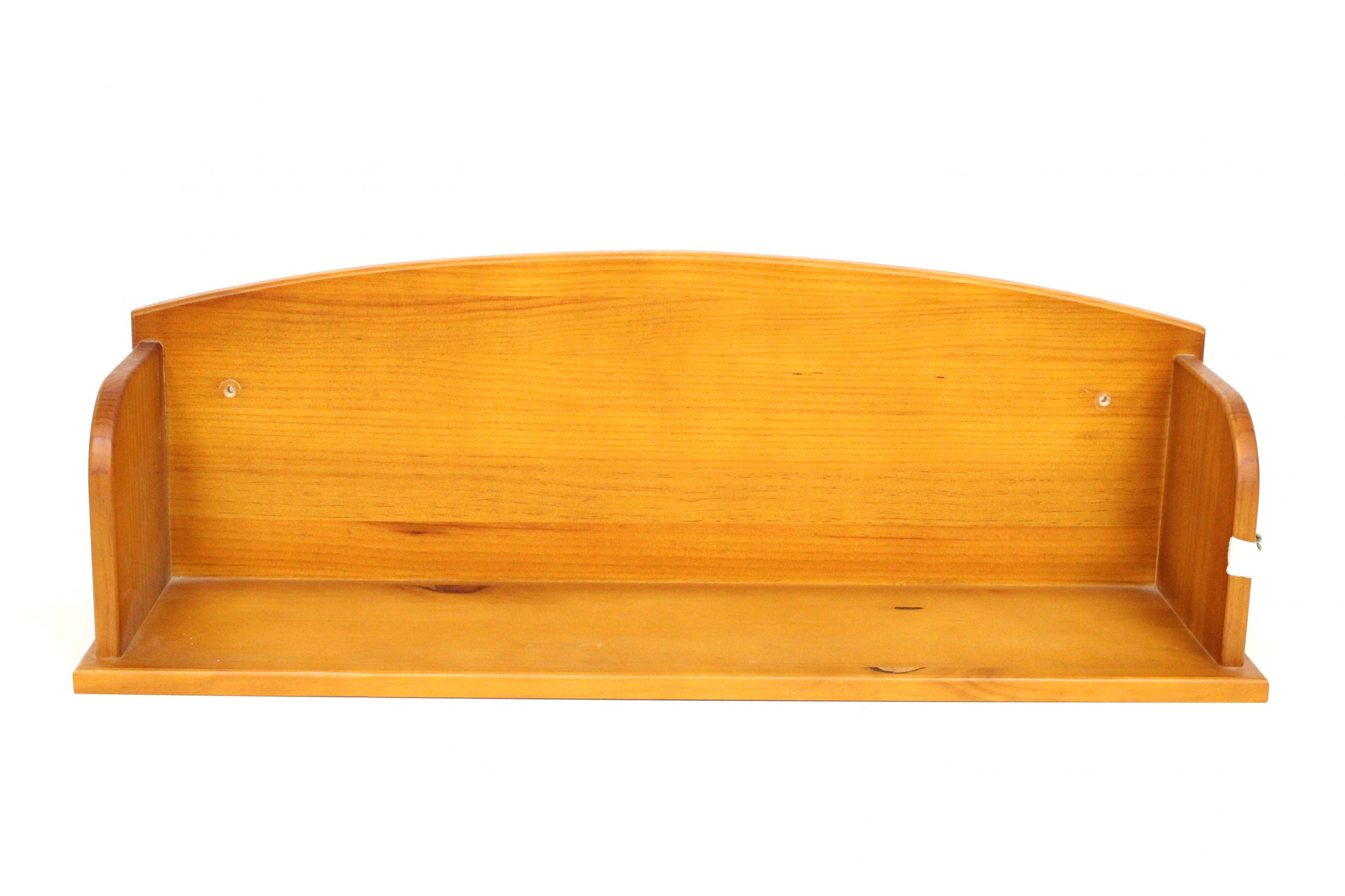 Estantería de madera con tope en los laterales, la parte frontal hacer forma curvada para dar un toque más elegante. Medidas: ancho: 80 cm; fondo: 21 cm; alto: 21 cm.