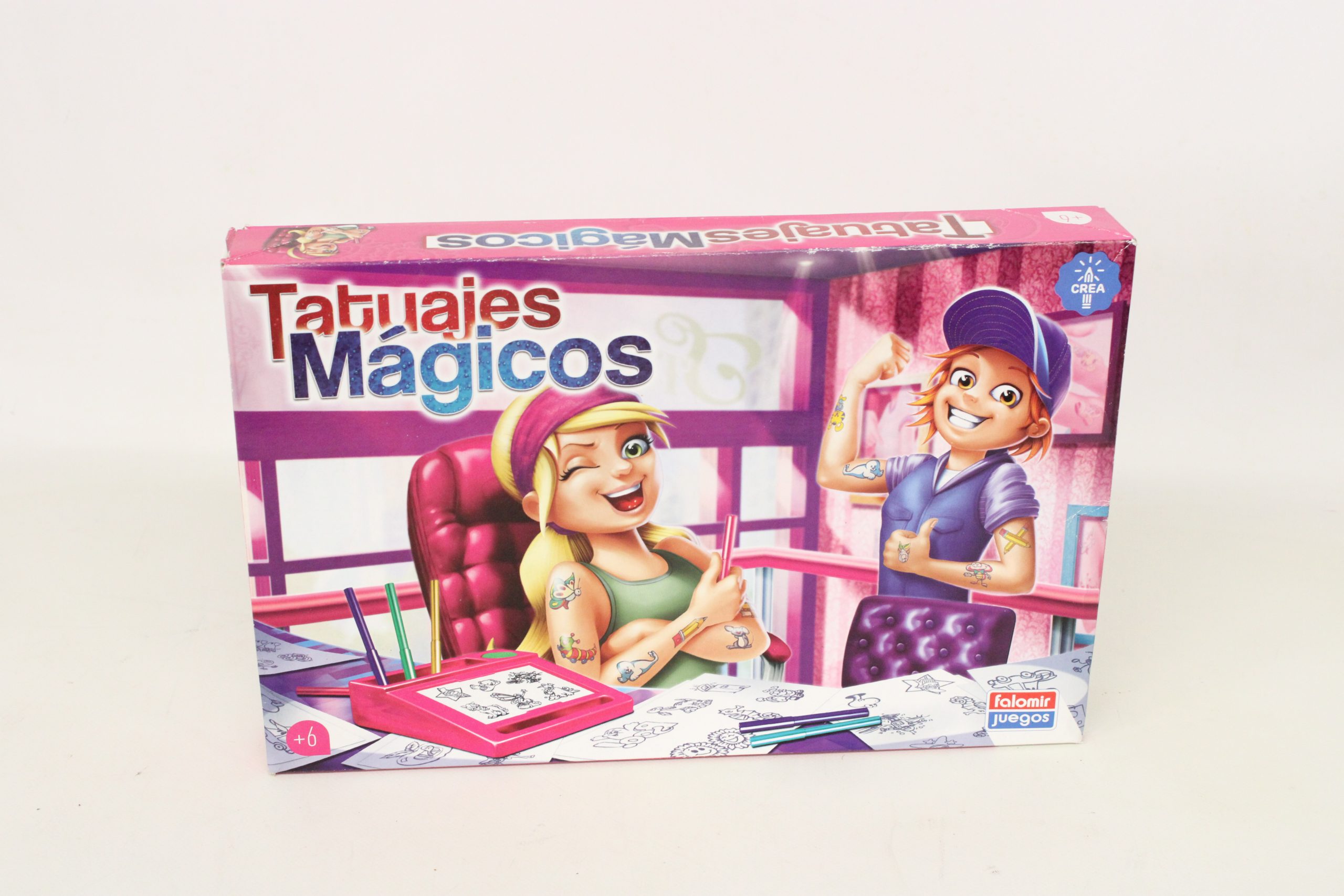 Juego de mesa Tatuajes Magicos de la marca Falomir,este es un juego de manualidades diseñadopara que los niños creen y decoren sus propios tatuajes temporales