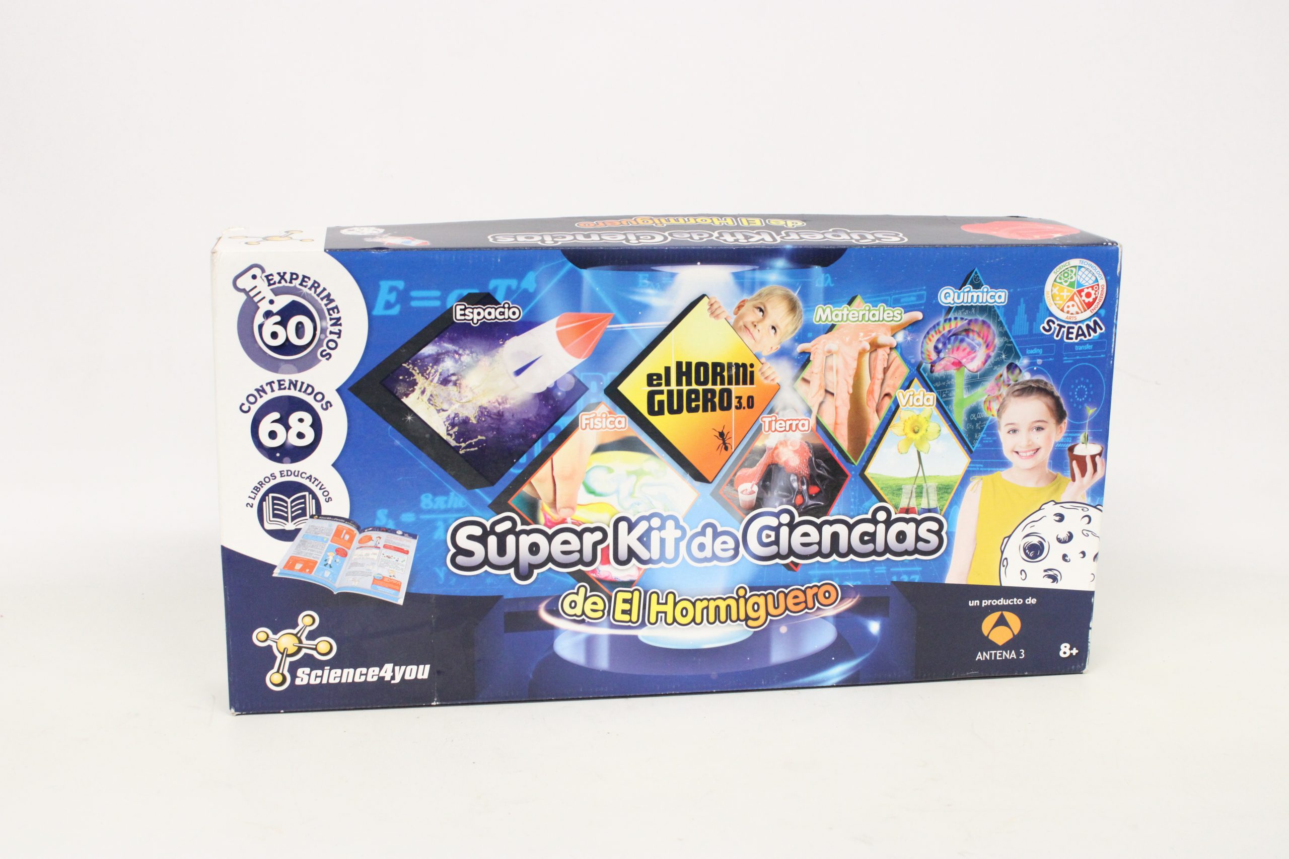 El Super Kit Hormiguero viene con varios contenidos para que puedas hacer experimentos diferentes. Aprende a emplear la química para crear explosiones de color fantásticas, descubre cómo hacer el agua subir contra la gravedad y crear una mini bomba de agua empleando la física.