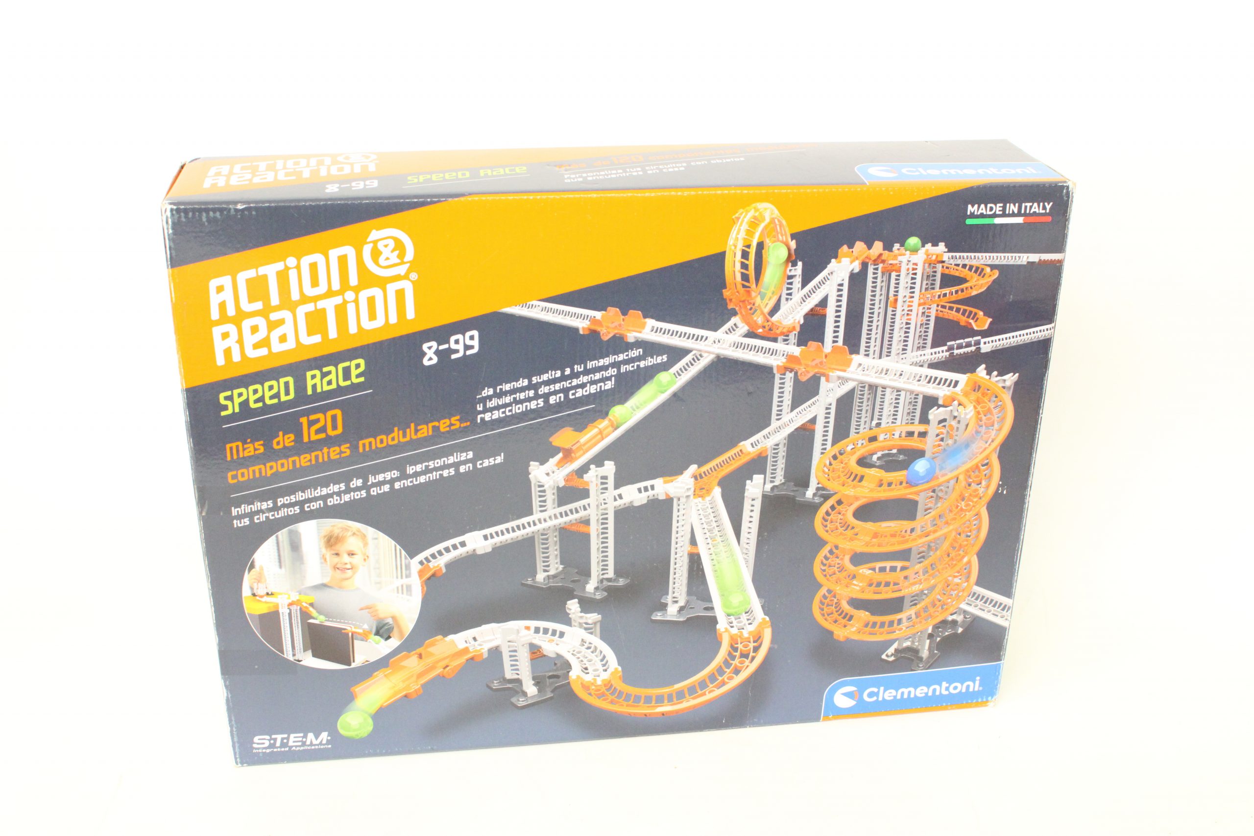 Kit de construccion Action Y Reaction speed Race de la maraca Clementoni, set cientifico Stem diseñado para niños de 8 años en adelante
