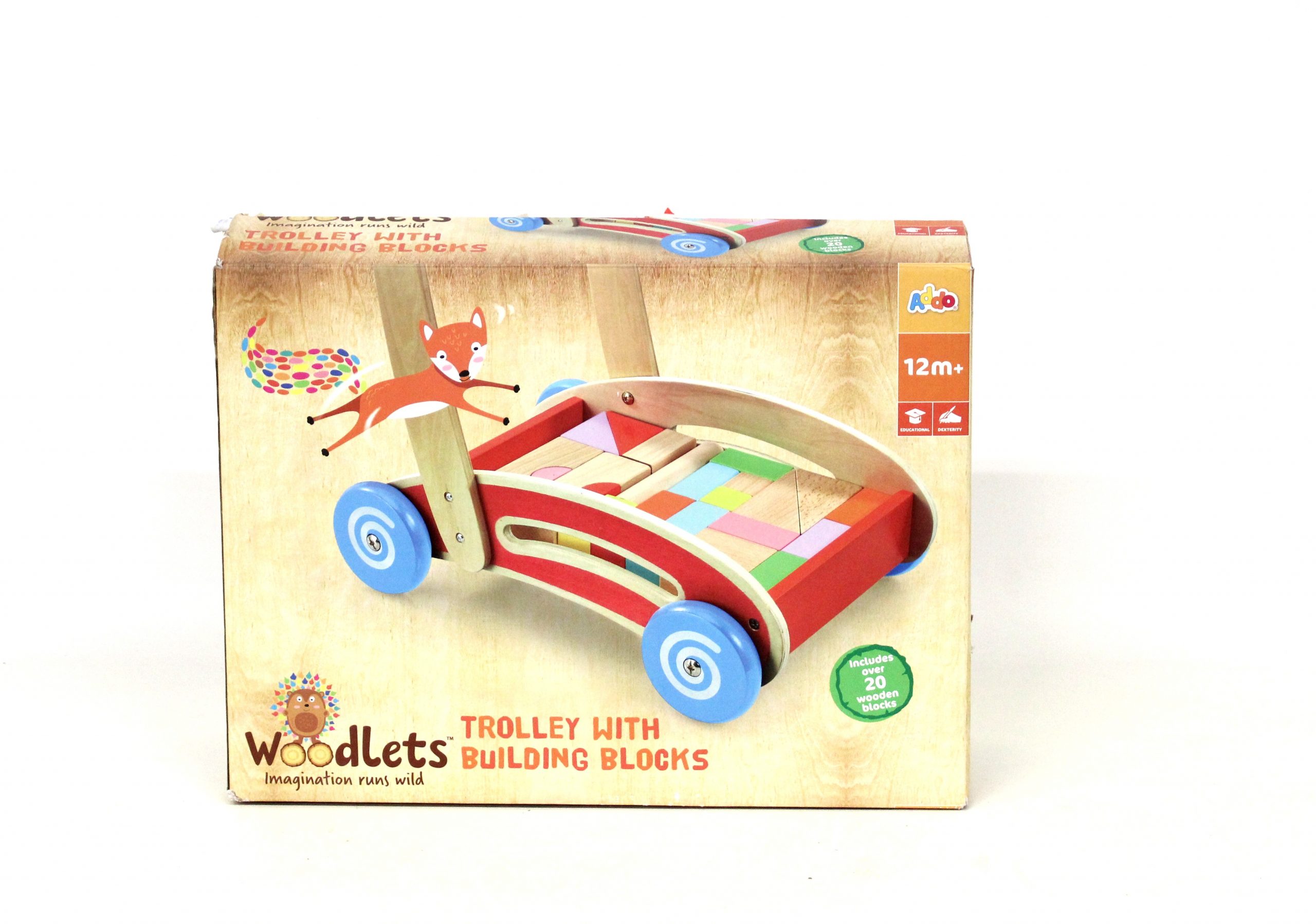 Andador caminador de madera diseñado para el desarrollo de la psicomotrcidad, la coordinación y el equilibrio de los peques que ya tienen la capacidad de ponerse de pie. Además, ¡contiene bloques de madera para que durante sus descansos, puedan hacer sus primeras construcciones! Edad: Desde los 12 meses.