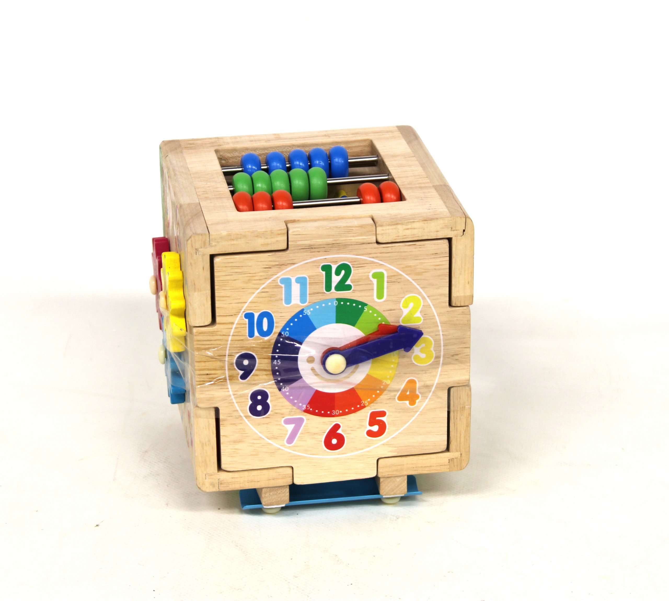 Cubo de actividades infantil de madera, que es un juguete educativo multisensorial, juguete que ayuda a desarollar habilidades motoras, logicas, persistencia y coordinacion visual y manual
