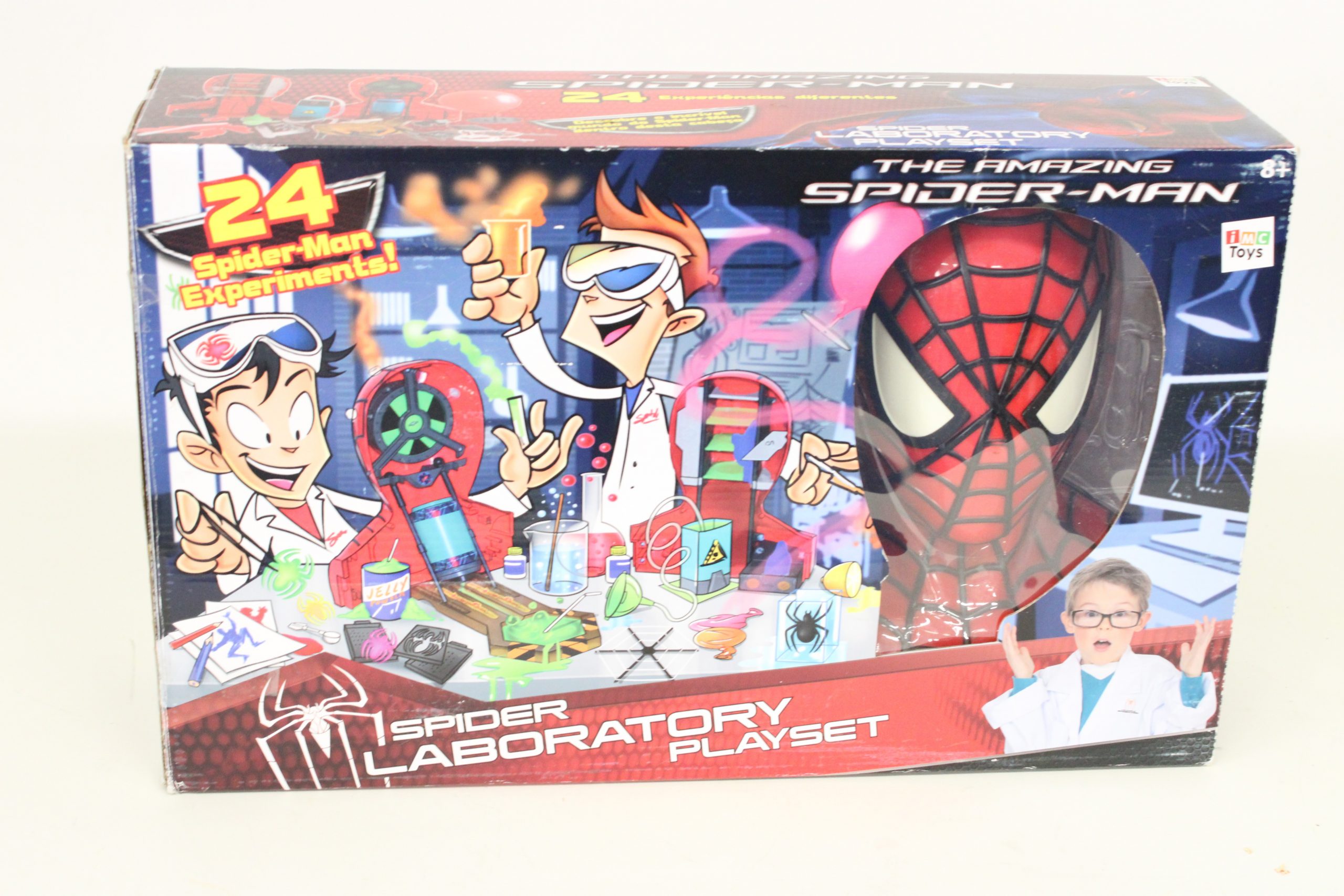 Juego de laboratorio de Spider-Man con 24 experimentos. Incluye figuras y accesorios para experimentos. Diseñado para niños a partir de 8 años.