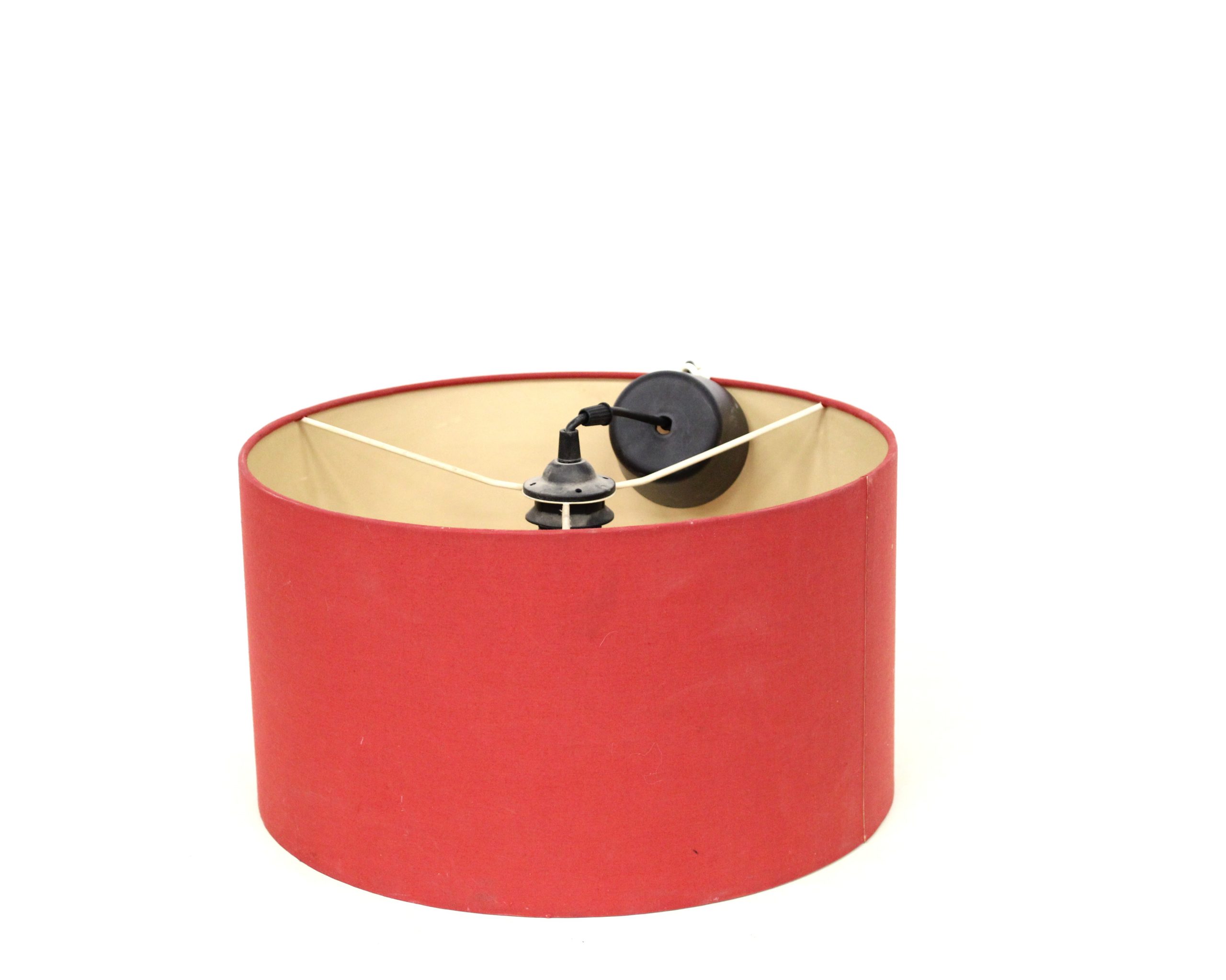 Lampara de techo colgante con pantalla cilindrica en tela en color rojo