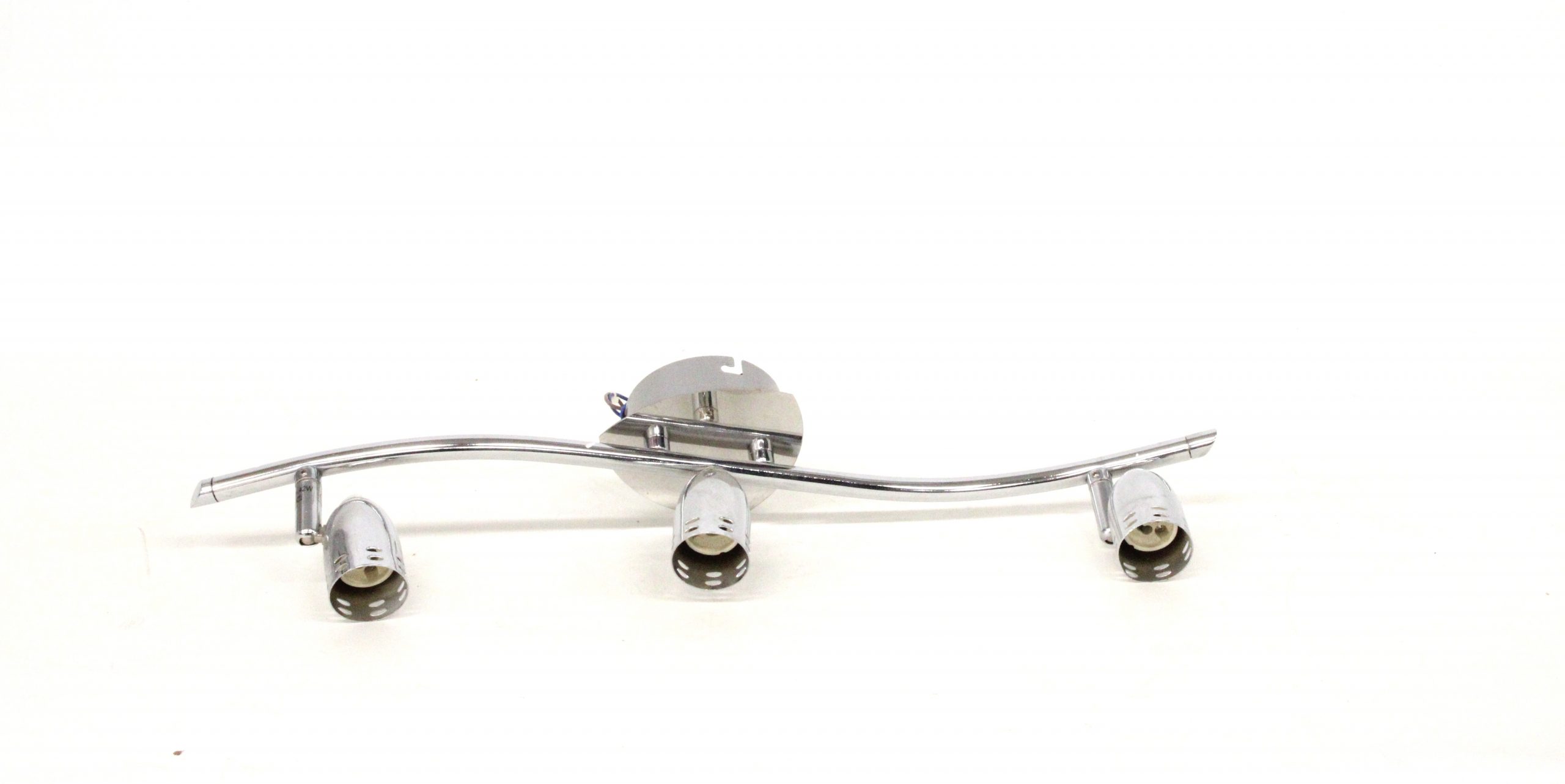 Lámpara de techo tipo foco con barra curva y acabado cromado, con tres focos, es ideal para cualquier estancia de su hogar.