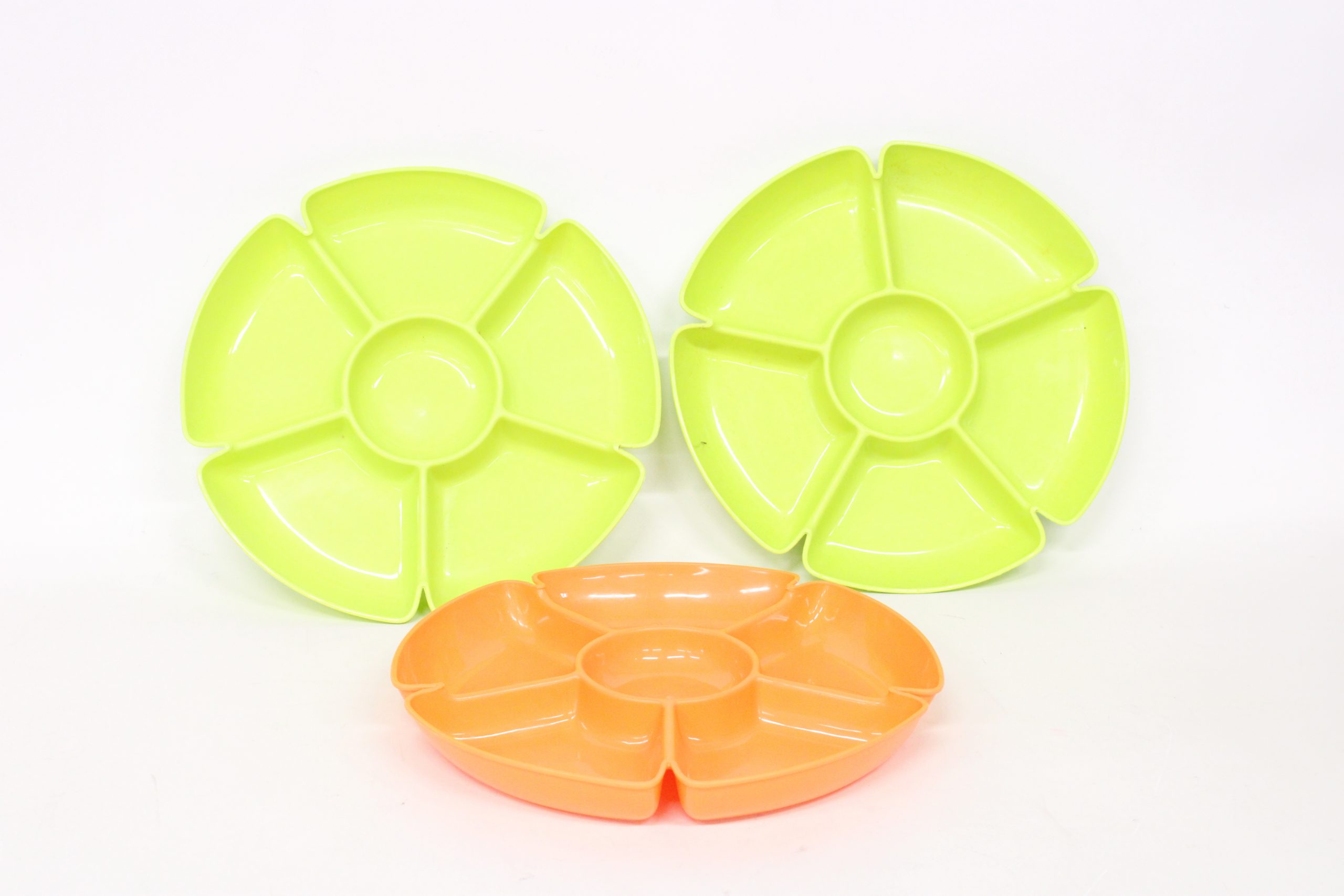 Lote de bandejas circulares con compartimentos, utilizado tanto en ambito educativo como en el hogar se conocen comunmente como bandejas de clasificacion o platos para aperitivos.