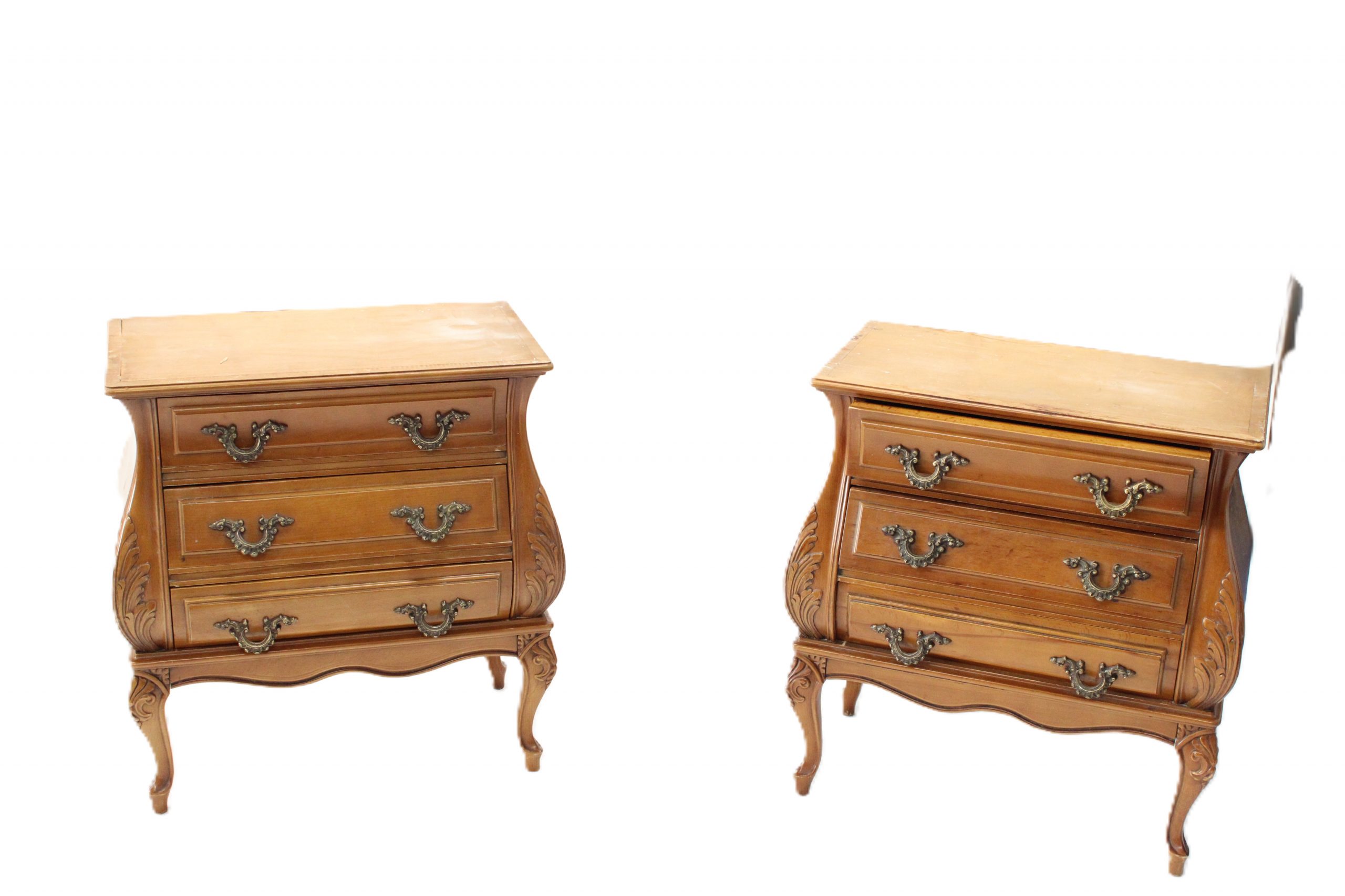 Encantadoras mesitas de noche de estilo francés provincial, finamente elaboradas. Una silueta bombe con preciosos detalles tallados, un faldón curvilíneo, elegantes patas cabriolé y herrajes intrincados. Estas mesitas de noche son increíbles y añadirán un toque rústico francés a la decoración de cualquier dormitorio. Medidas: anclho: 60 cm; alto: 62 cm; fondo: 32 cm.