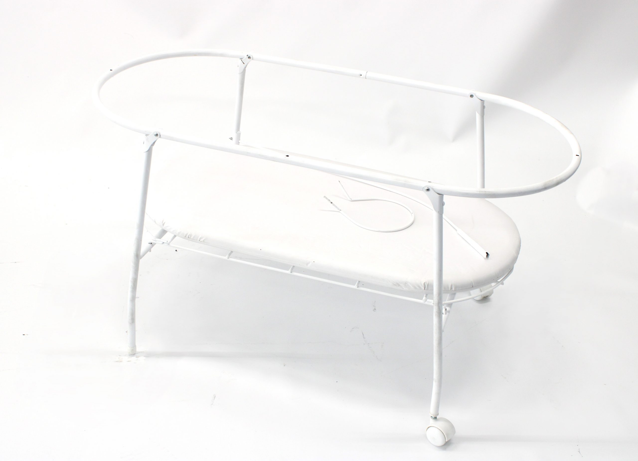 Moisés para bebé con estructura metálica dispone de ruedas para facilitar el desplazamiento es un diseño elegante en color blanco. Perfecto para comodidad en los primeros meses de vida.