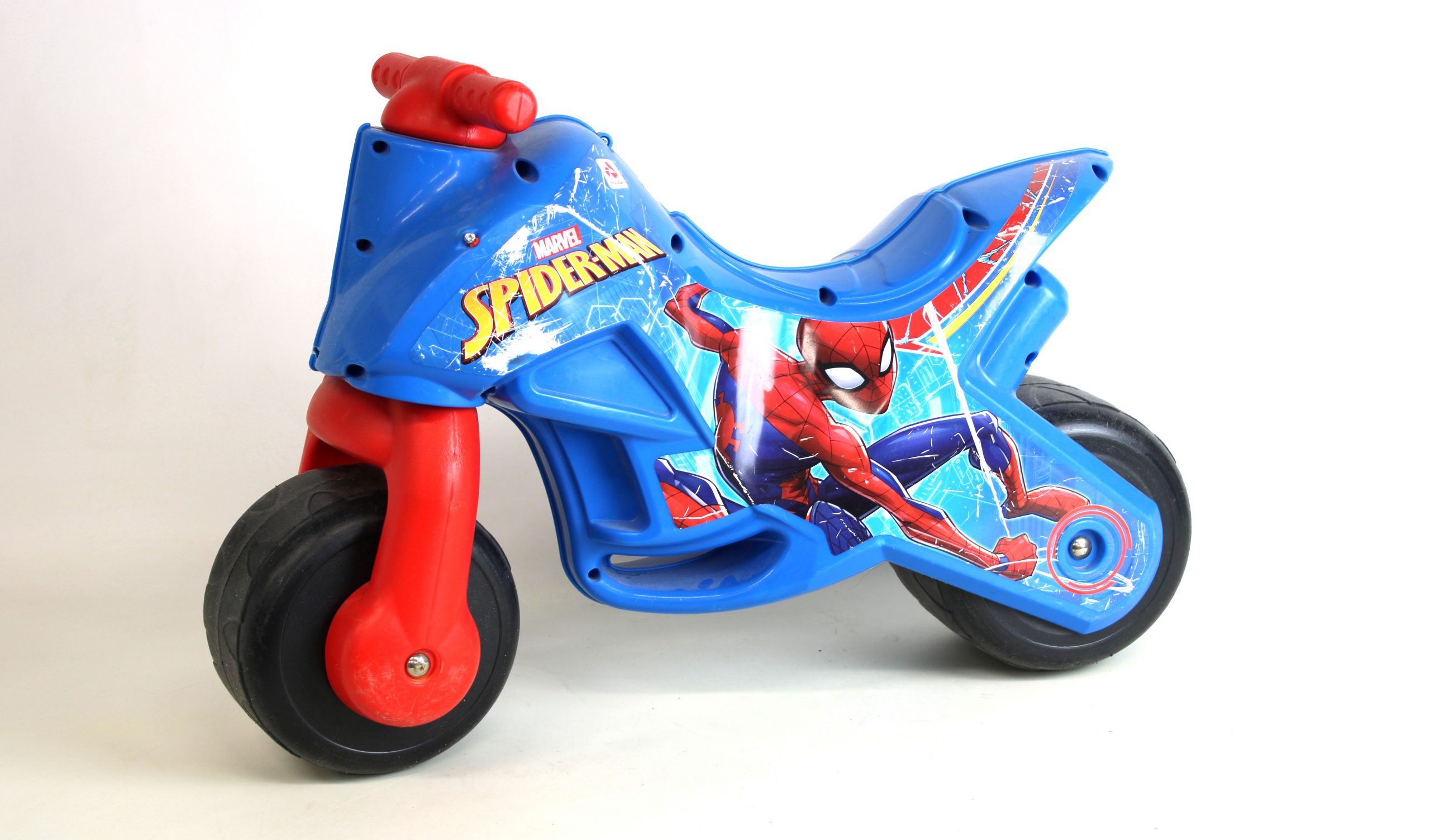 Moto correpasillos de Spiderman, juguete diseñado para que los niños pequeños generalmente a partir de 18 meses desarrollen sus habilidades motrices