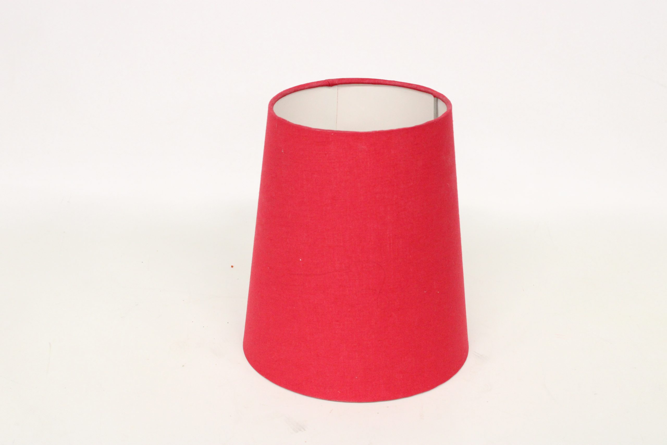 Pantalla cónica para lámpara de algodón roja. Medidas: alto: 25 cm; diametro: 23 cm.