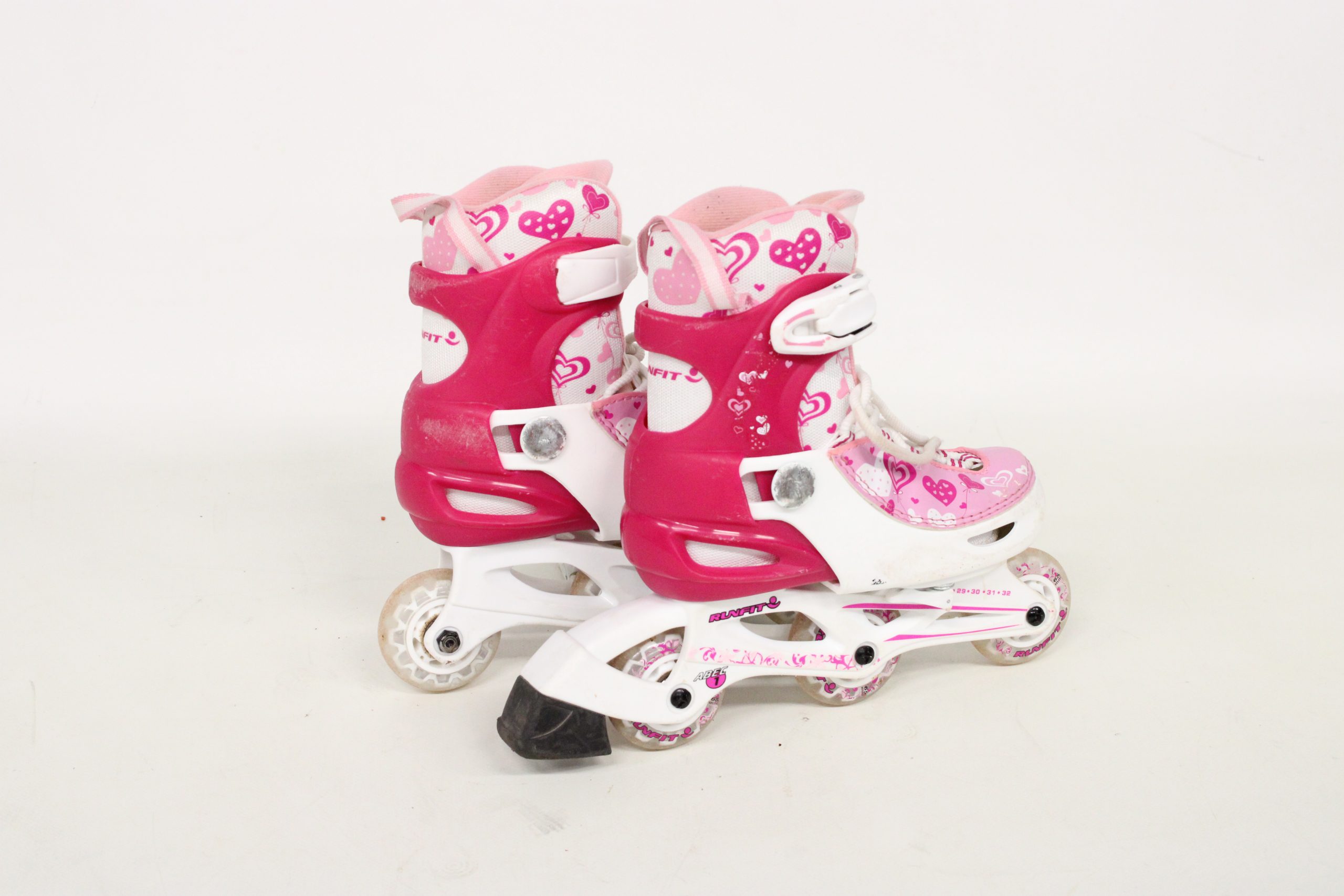 Patines en linea ajustables para niña de la marca Runfit diseñado con un estampado de corazones de talla de 29-32