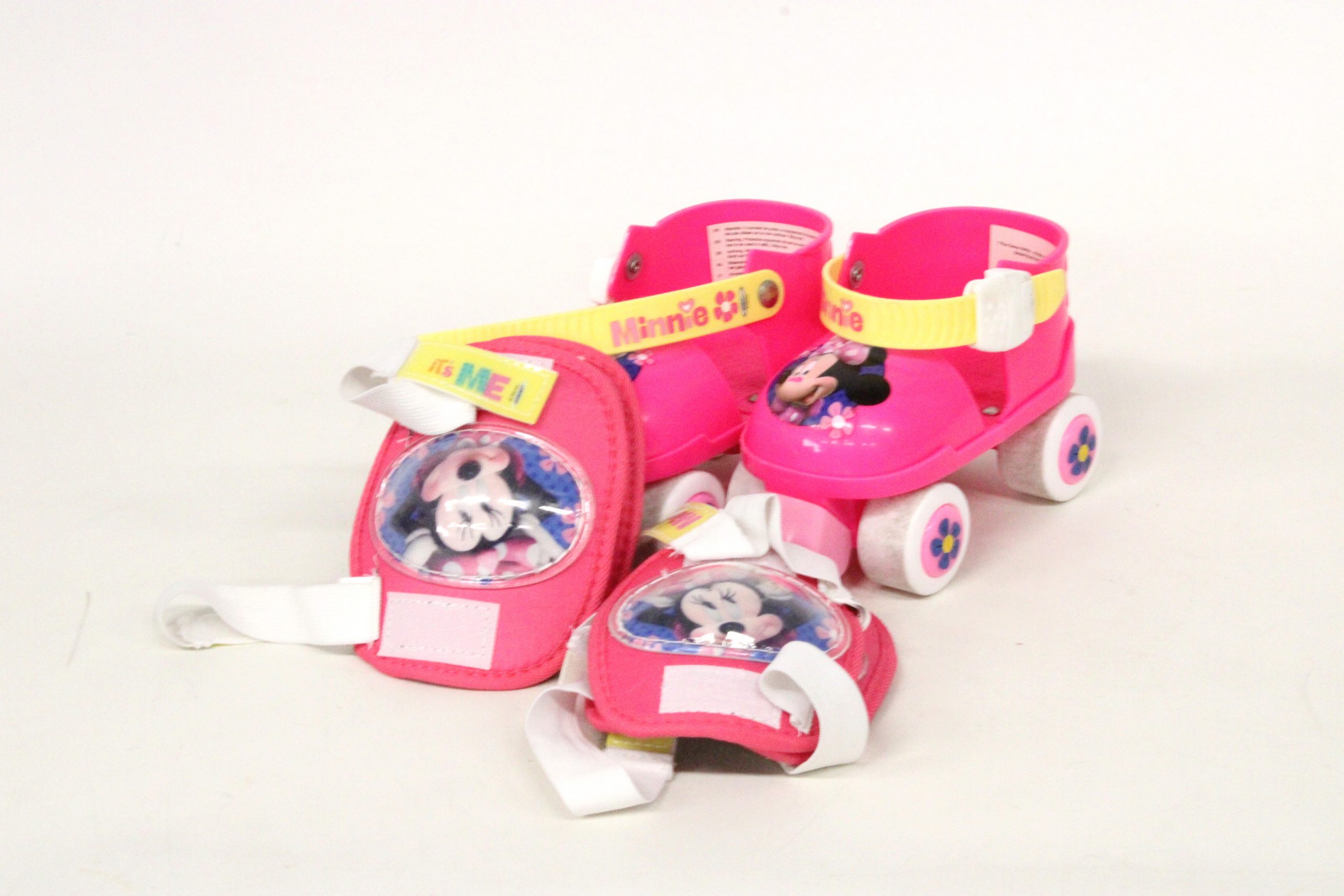 Set de patines y protecciones de Mini Mouse para niños, incluye patines de 4 ruedas ajustables y un kit de protecciones a juego