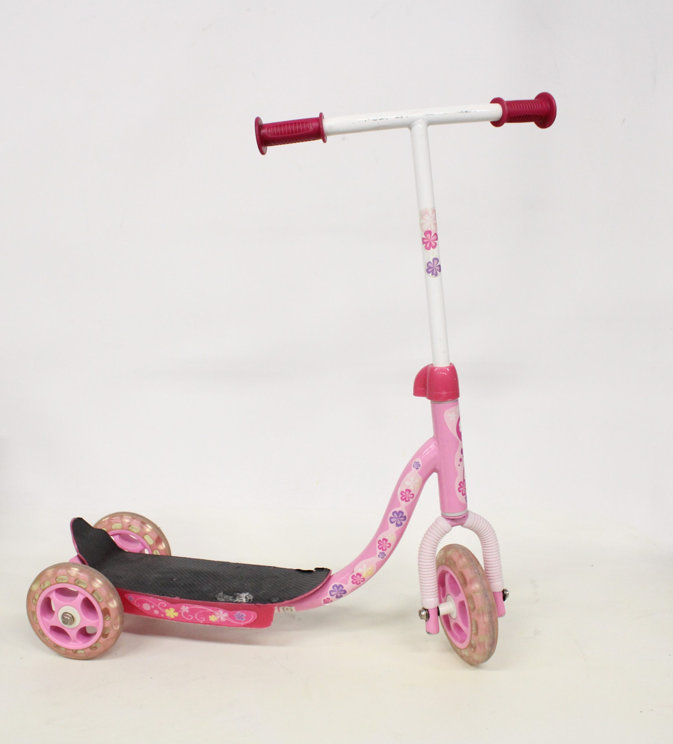 Patinete de 3 ruedas para niños en color rosa y blanco con detalles florales apto a partir de 2 años