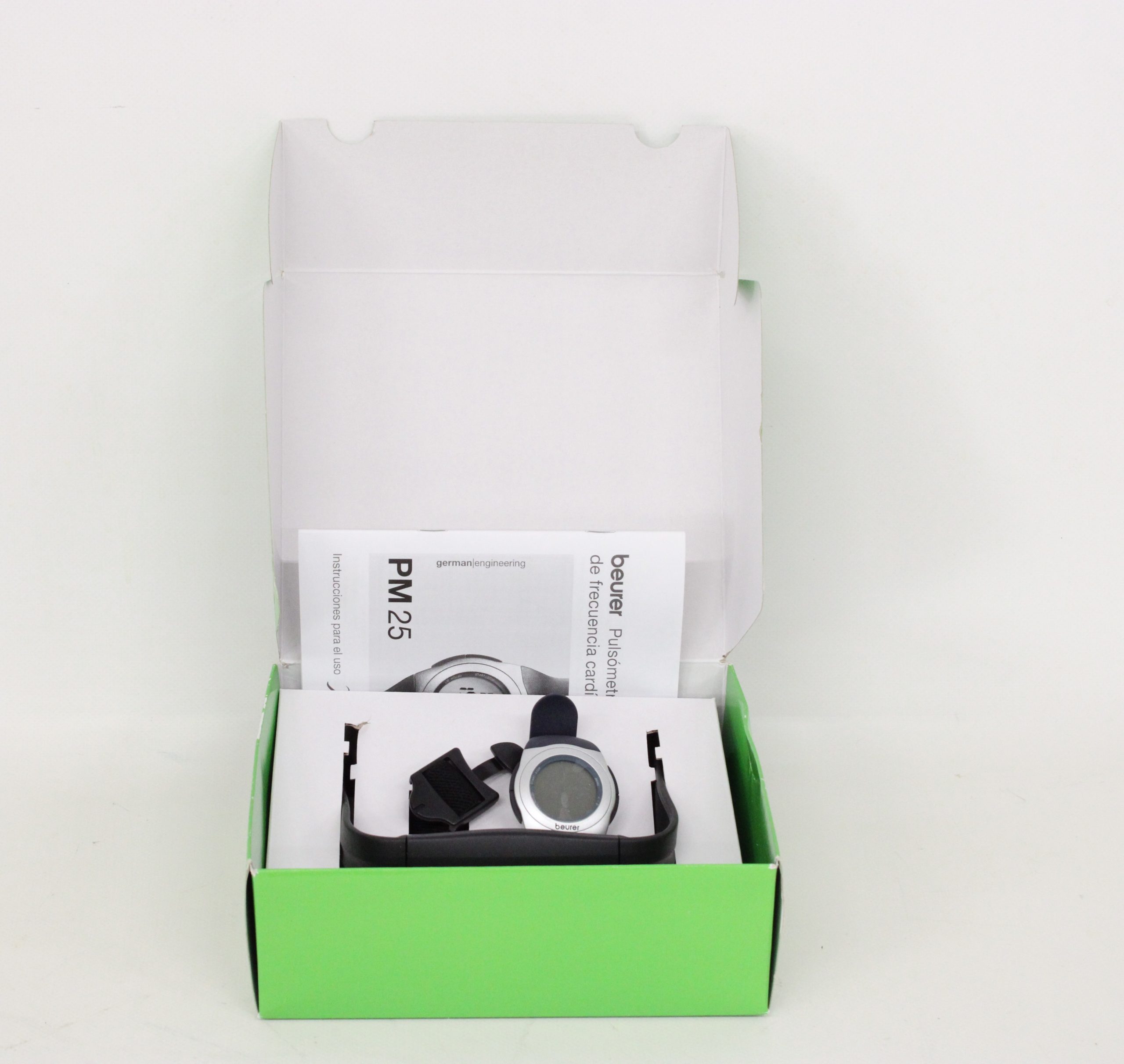Beurer PM 25. Pulsómetro de frecuencia cardíaca con correa pectoral, sumergible 30 m., medidor ritmo cardíaco, ajuste de niveles de entrenamiento, transmisión analógica, consumo de calorias.