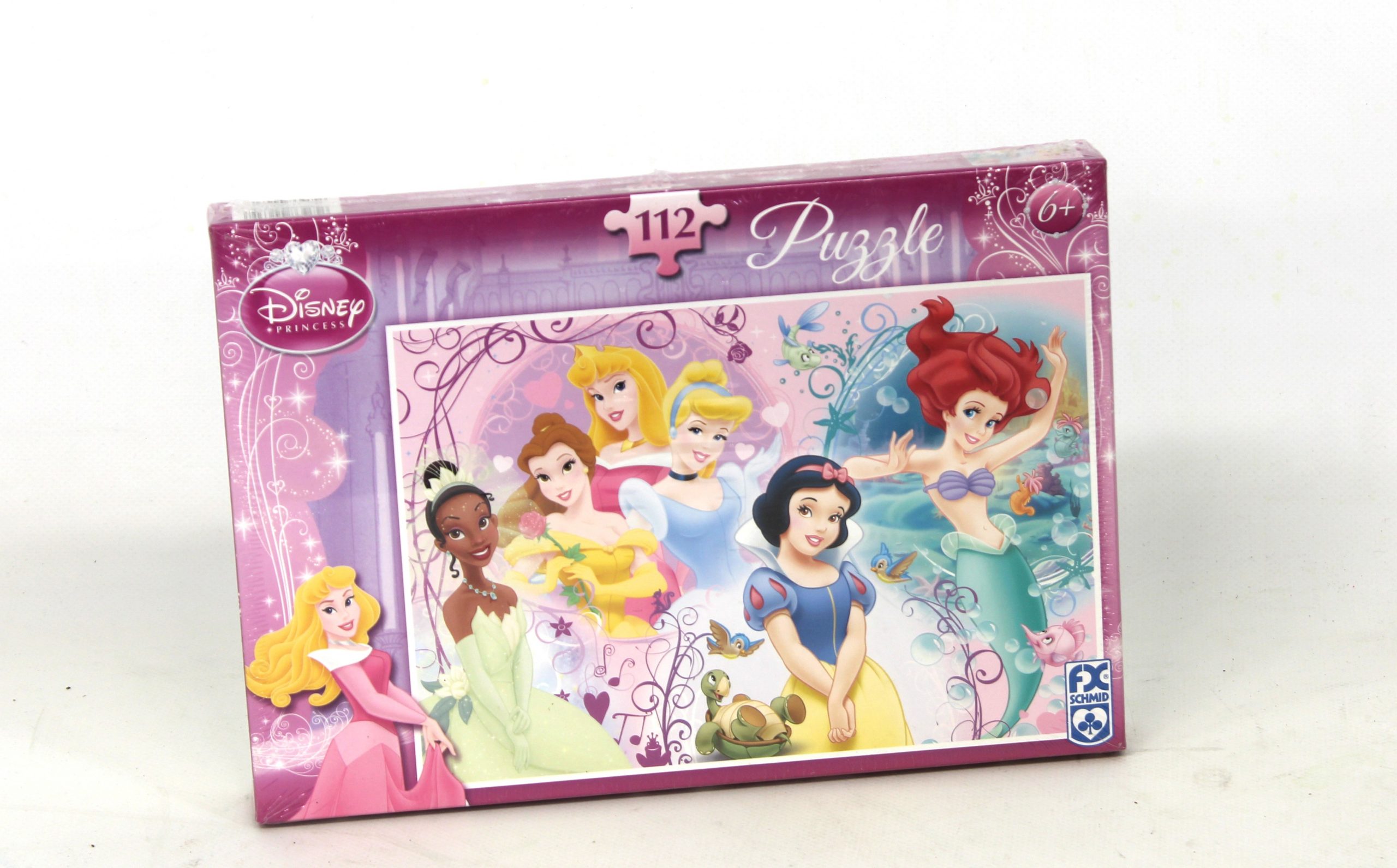 Puzzle de las Princesas Disney de 100 piezas. Permite construir una imagen con varias princesas, incluyendo a Ariel, Bella, Blancanieves, Rapunzel, Cenicienta y Yasmín. El tamaño del puzzle montado es de aproximadamente 40 cm x 28 cm. La edad recomendada para su uso es a partir de los 5 o 6 años.